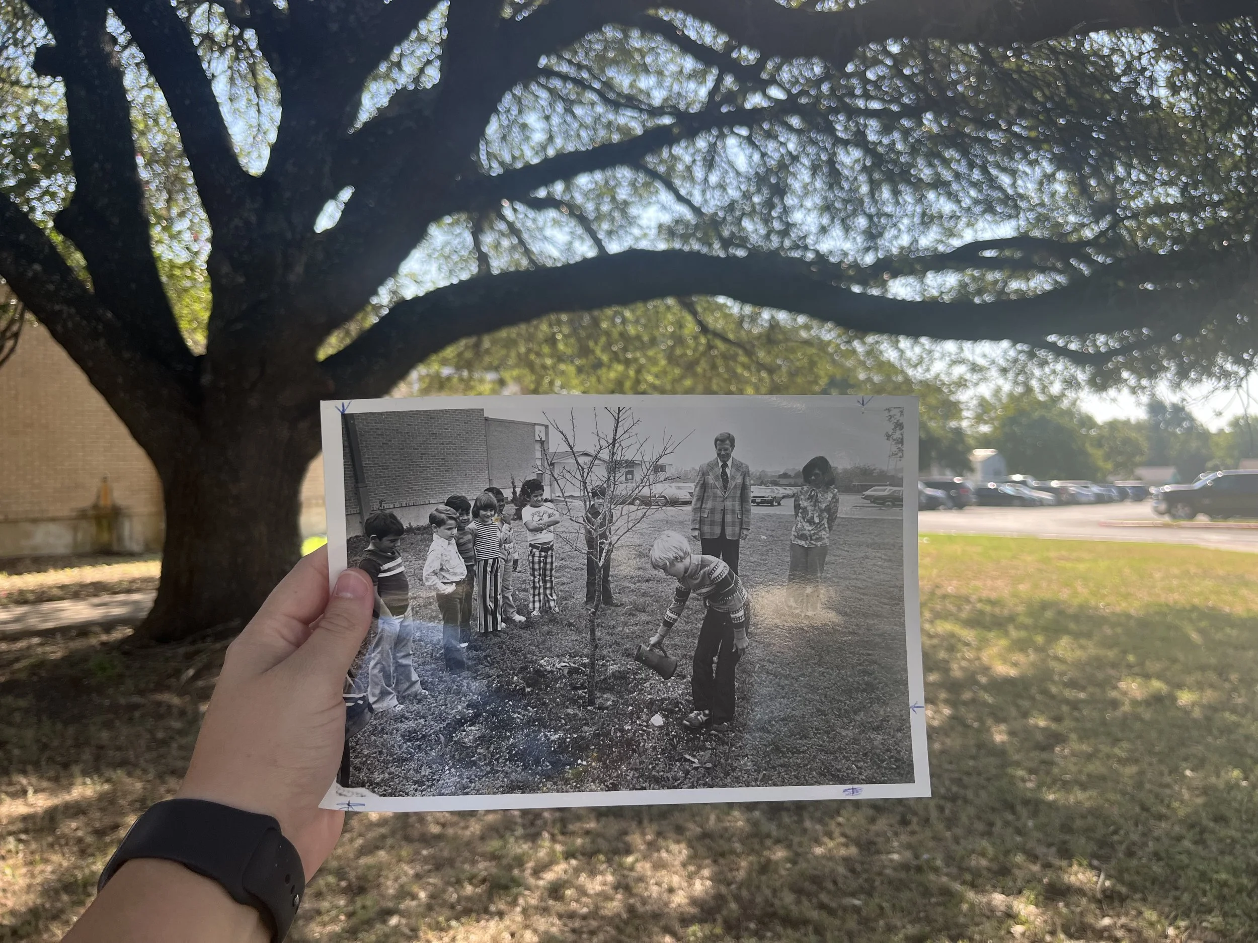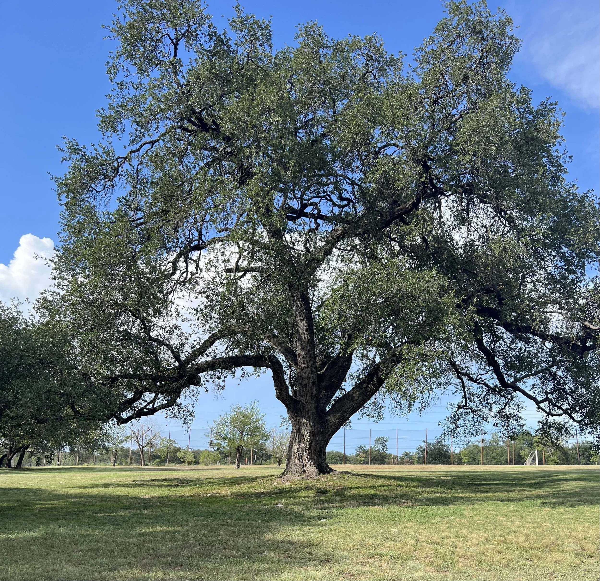 Why Is This Tree Special? This tree is special because it is the first one you see when you drive up in the morning. Families gather around it in the morning and at dismissal and it was planted by the school community in the early years of the school’s existence. This tree has the most remarkable canopy- providing refuge in the sweltering Texas heat to a massive slice of our front entrance. It’s resilience through the years, its steadfast nature through thick and thin, and its ability to provide inspiration through the cycle of its seasonal nature- growing just as the children grow and sheltering us in its leafy embrace! This tree has seen the school through much and we hope to see it continue to thrive for decades to come.