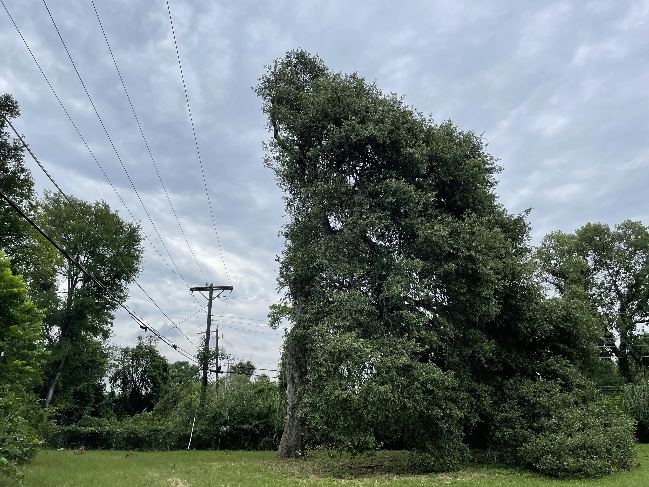Why Is This Tree Special? This tree is a tall, beautiful Live Oak with a full canopy that goes all the way to the ground, forming this magical secret room underneath- on only 1/2 of the tree. It’s next to power lines so one whole side has been pruned away from the lines for many years. I’ve never seen a tree quite like it and even though I wish it got to have its whole canopy, the way that it has grown is really unique.