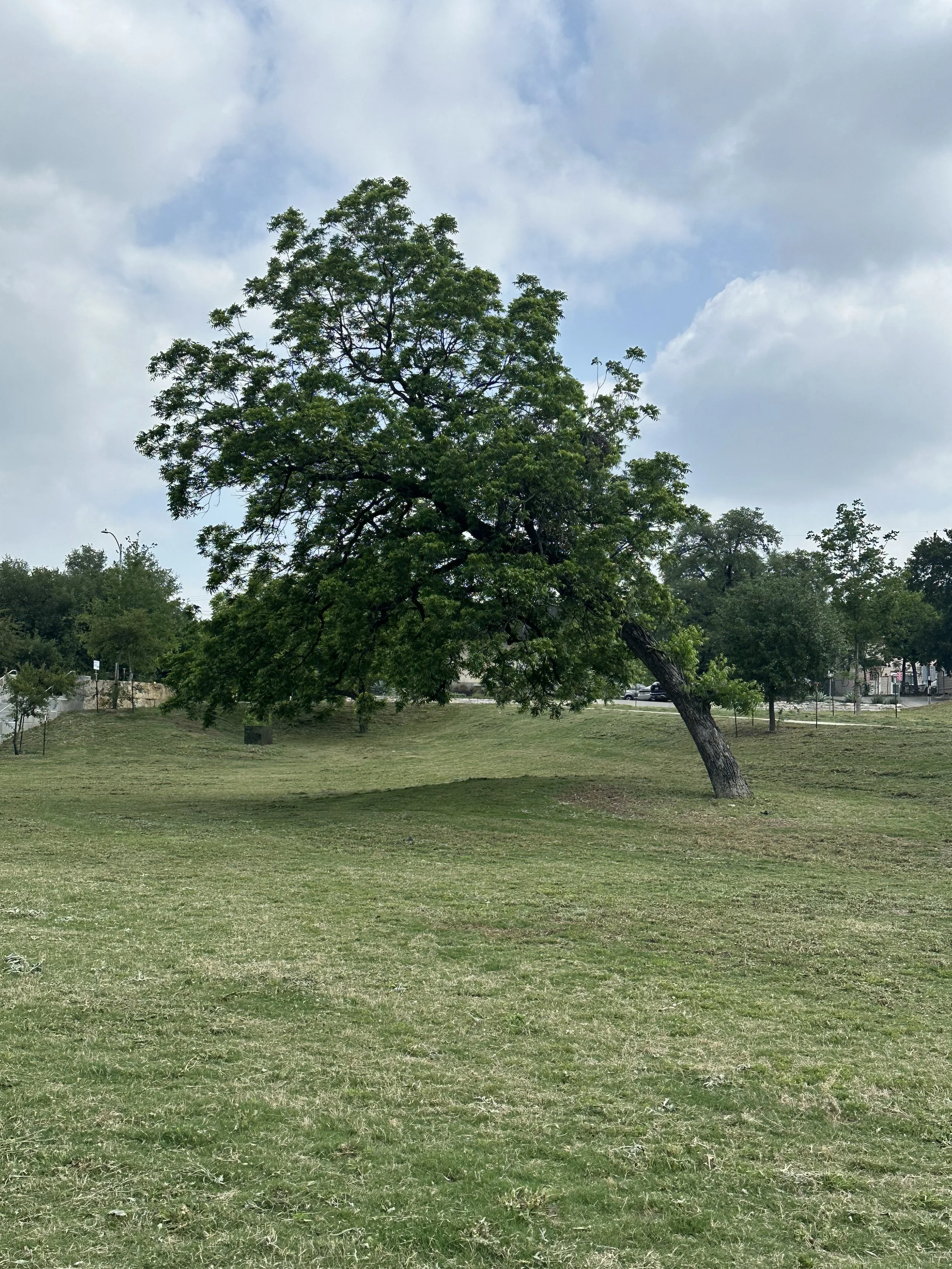Why Is This Tree Special? This tree is the perfect place to escape the Texas heat. It leans to one side, providing a nice little shaded area to enjoy in an otherwise sunny park. Such a great place to settle in with a nice book, admire the wildflower meadow, or gaze upon the growing Austin skyline.